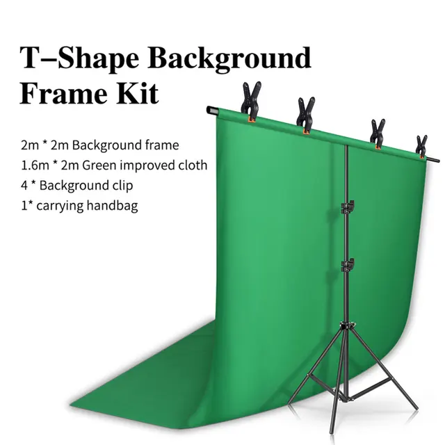 SH-Kit de soporte de fondo en forma de T con tela de fondo, soporte de marco de pantalla verde con tecla de vídeo Chroma para accesorios de estudio fotográfico de fotografía