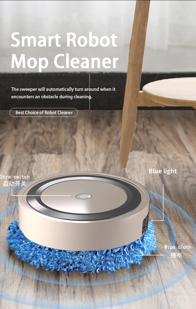 Aspiradora robótica multifuncional, trapeador de limpieza, barredora de suelo, aspiradora de carga inteligente sin ruido