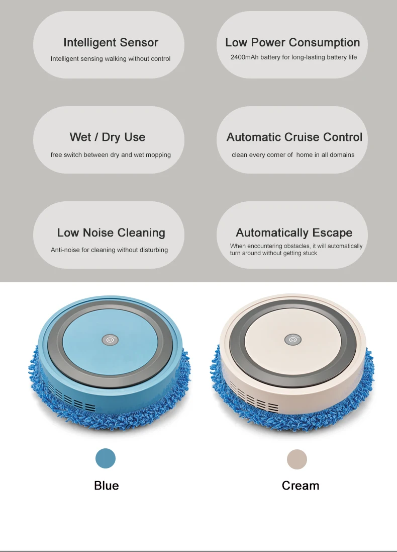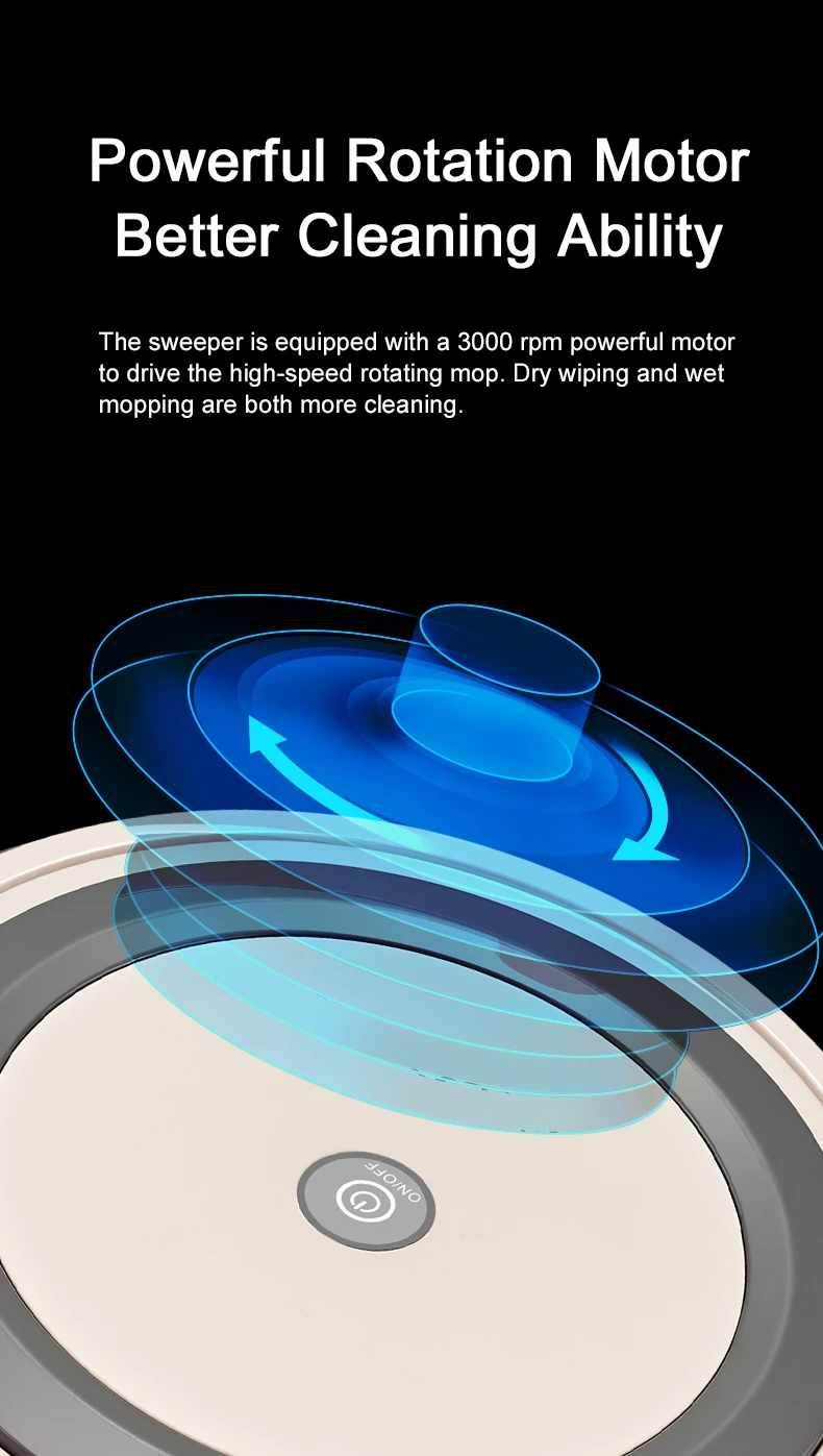 ● puede trapear el suelo durante mucho tiempo; La batería de gran capacidad de 2400mah, combinada con un motor de alta potencia de 3000 RPM de bajo consumo de energía, le permite funcionar continuamente durante 2 – 3 horas.