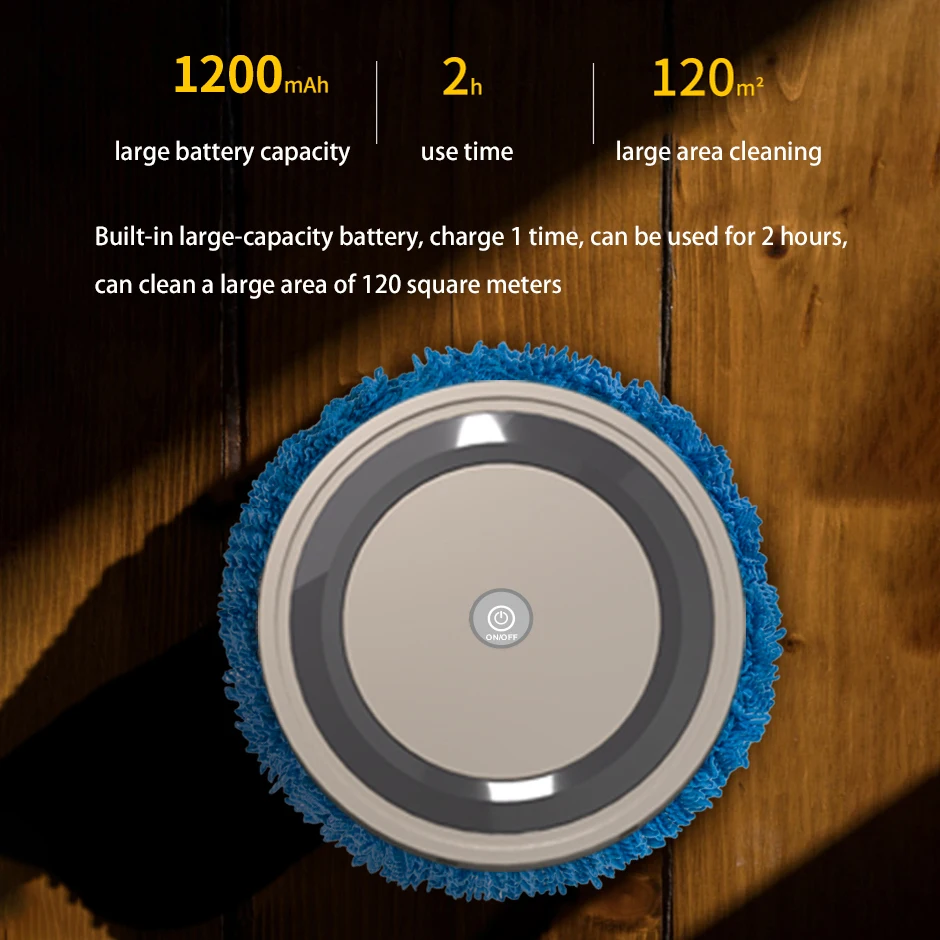 ● puede trapear el suelo durante mucho tiempo; La batería de gran capacidad de 2400mah, combinada con un motor de alta potencia de 3000 RPM de bajo consumo de energía, le permite funcionar continuamente durante 2 – 3 horas.